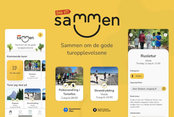 Sammen – en NY funksjon i Stikk UT!-appen! Her kan du ta initiativ til en tur eller finne en fellestur, helt gratis! Her får du informasjon om hvordan du kommer i gang.