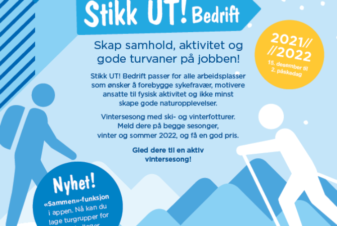 Bli med på Stikk UT! Bedrift og skap samhold, aktivitet og gode turvaner for dine kollegaer! Påmeldingen er åpnet.