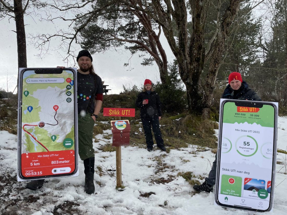 Friluftsrådet inviterte samarbeidspartnerne og sponsorene ut på tur til Julneset for utprøving og markering av den flunkende nye Stikk UT!-appen. Der ble vi kjent med appen og arbeidet som har vært gjort mens vi gikk til Stikk UT!-turmålet og ved bålet med bålkaffe og god bakst. Det er Sparebanken Møre, Gassror, Amedia og Møre og Romsdal fylkeskommune som har bidratt med midler til at appen kunne bli en realitet. Og vi er svært glade for at appen er gratis å bruke. Til utvikling av APPen har vi hatt med oss bedriftene Nivero og TIBE. Til daglig er det Marte Melbø, May Britt Haukås og Liv Synnøve Hoel som jobber med Stikk UT! og det er Patrick Gule som har hatt ansvaret for utvikling av den nye Appen.