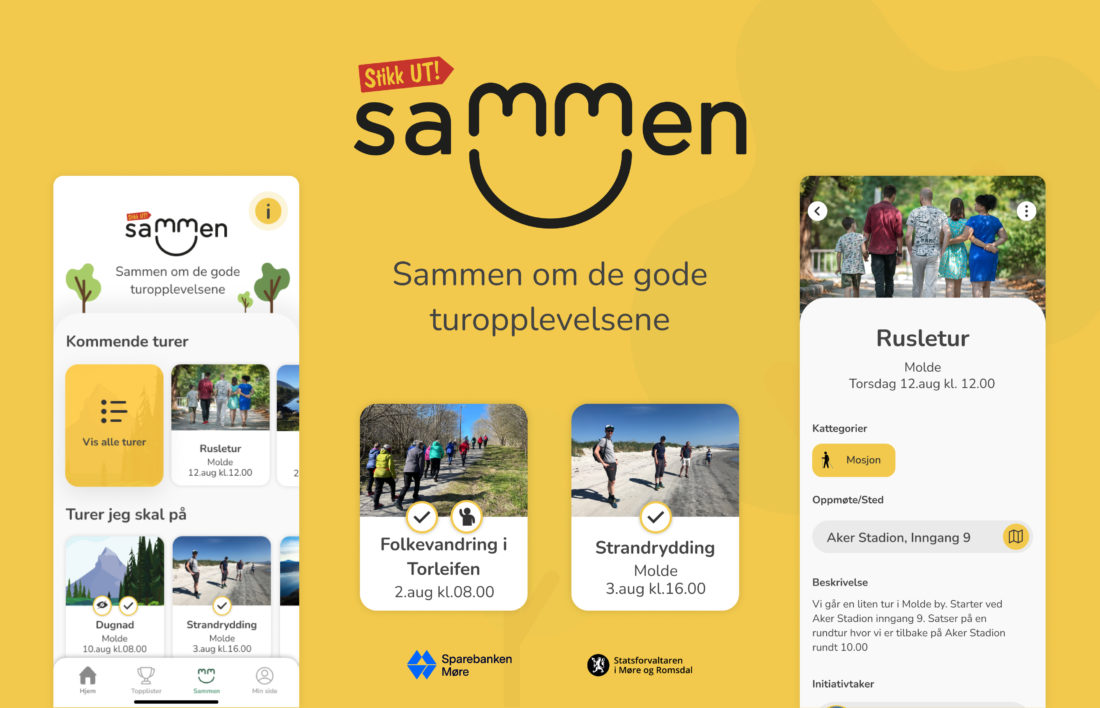 Sammen – en NY funksjon i Stikk UT!-appen! Her kan du ta initiativ til en tur eller finne en fellestur, helt gratis! Her får du informasjon om hvordan du kommer i gang.