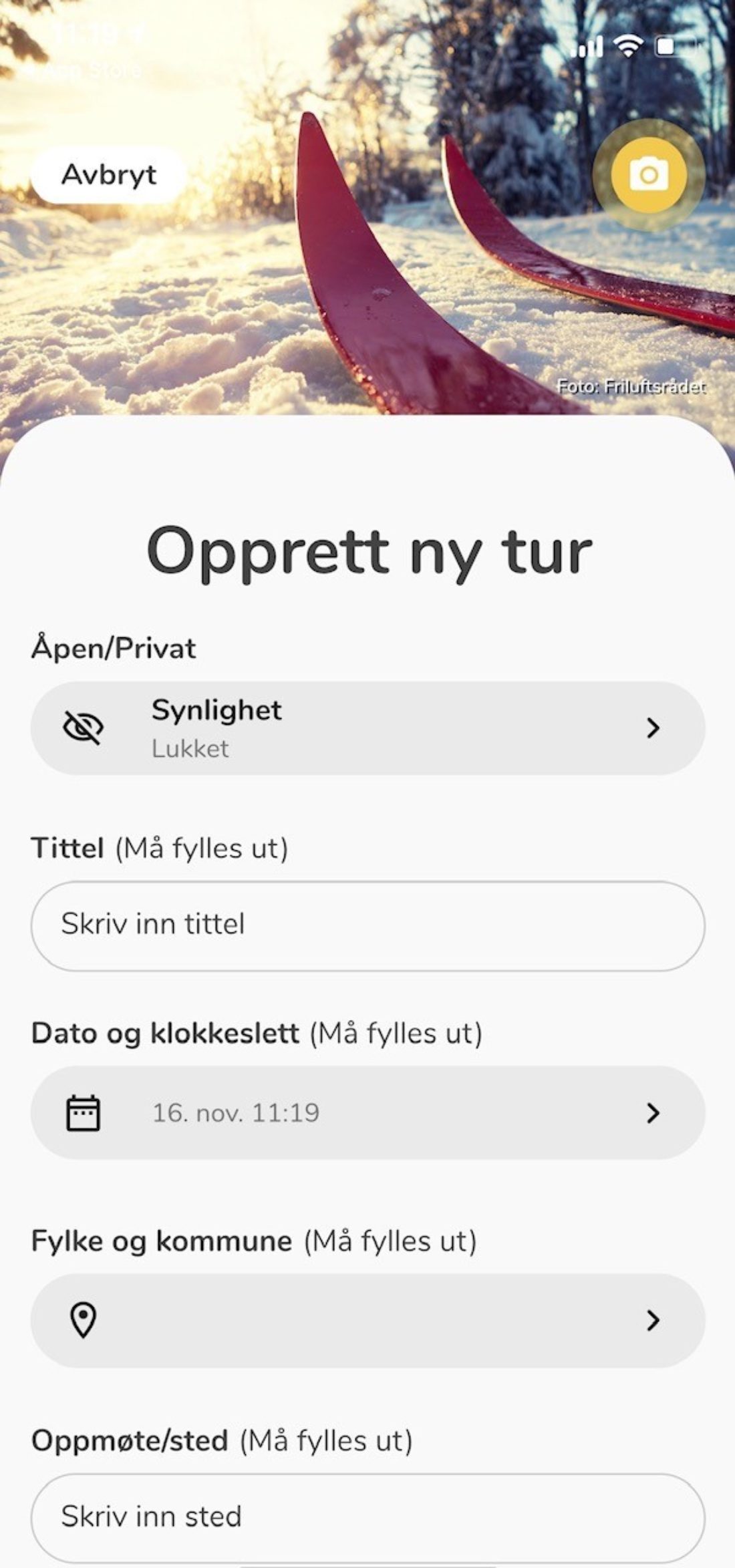 Nederst på åpningssiden finner du knappen «Ta initiativ til en tur». Trykk på den og du er i gang med å lage en tur. Enkelte felt må fylles ut og noen er valgfri. Det som er viktigst er dato, klokkeslett, oppmøtested, tittel og en enkel turbeskrivelse. Forklar helt enkelt hva turen innebærer, skal deltagerne ta med kaffe, sitteunderlag, niste etc.