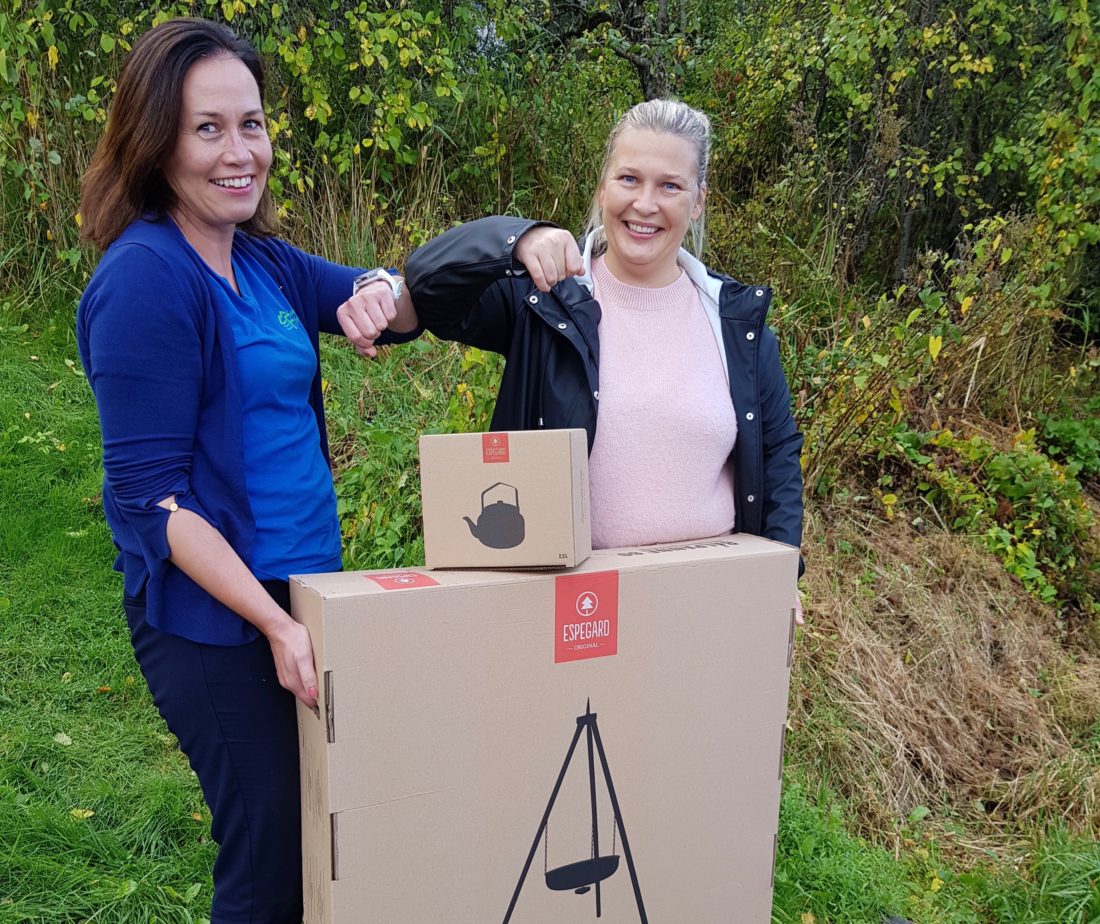 Camilla Helland fra Ålesund ble trekt ut som vinner av en bålpanne med kaffekjel, på en registrert tur til Kråkvika friluftsområde i Ålesund og hun fikk overrakt premien av daglig leder i Sunnmøre friluftsråd, Anne Berit Støyva Emblem.