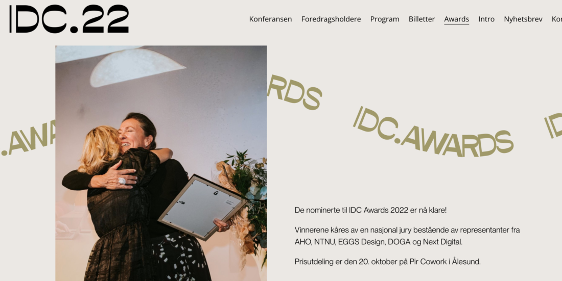 20. oktober går IDC 22; Norges største industridesignkonferanse av stabelen i Ålesund. Under konferansen skal det bla deles ut priser til bedrifter som har utmerket seg i ulike kategorier og vi er kjempestolte over at Stikk UT! er nominert til to av disse; Årets Brand og Bærekraftsprisen.