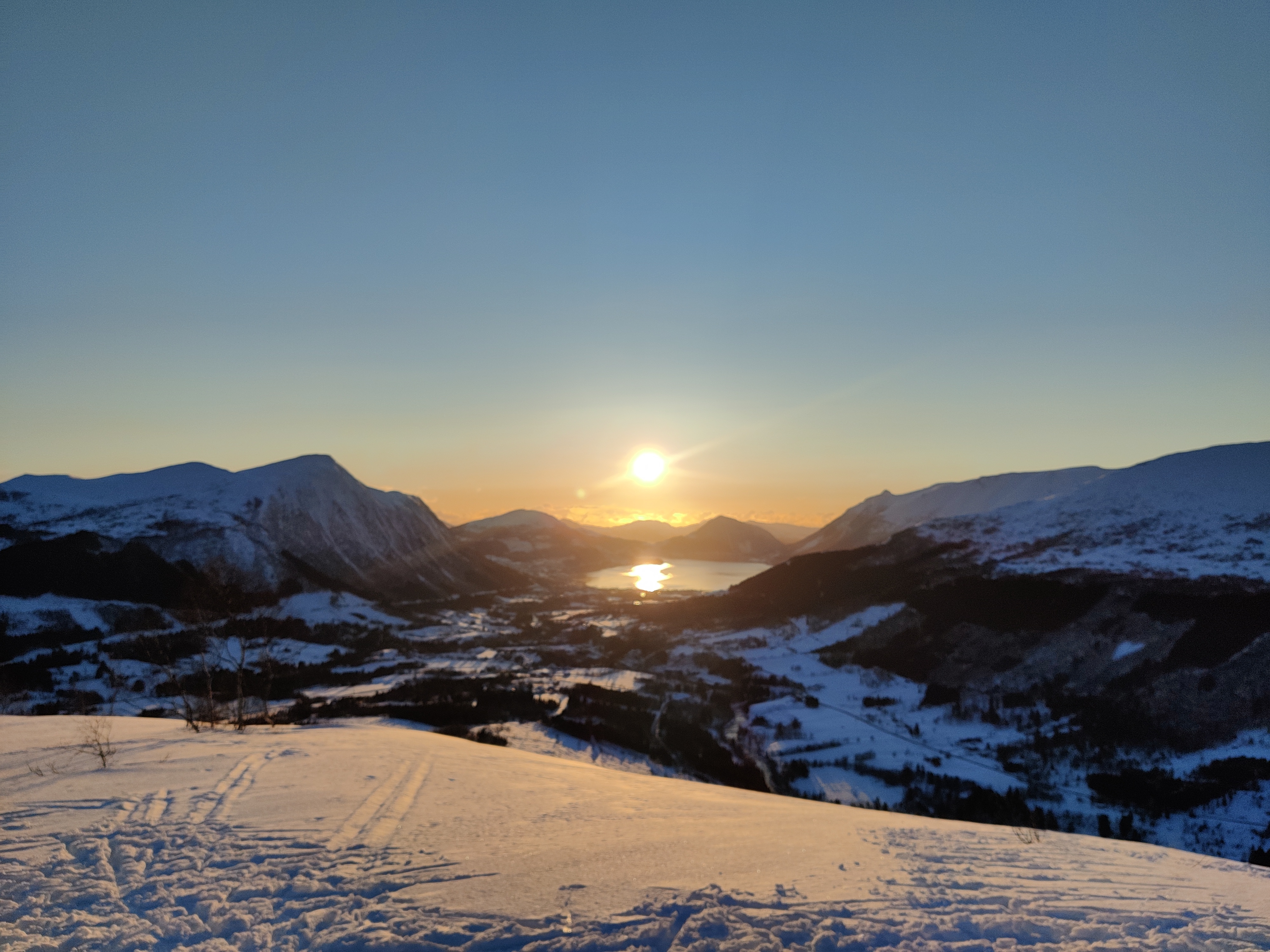 Nå er det flotte forhold med mye snø. Det er flott utsikt nedover hele dalen og Romsdals fjorden kan skimtes. Området byr på majestetiske fjell og mye fin kjøring ned fra vatnet. På Nysetra er det noe bord/ benker, men de kan være dekket av snø midt på vinteren. På Middagsvatnet er det en jeger & fisk forenings-hytte som kan leies for overnatting. På skituren til Ende Vollalivegen finner en ett grindbygg som passer fint for å spise nista si.